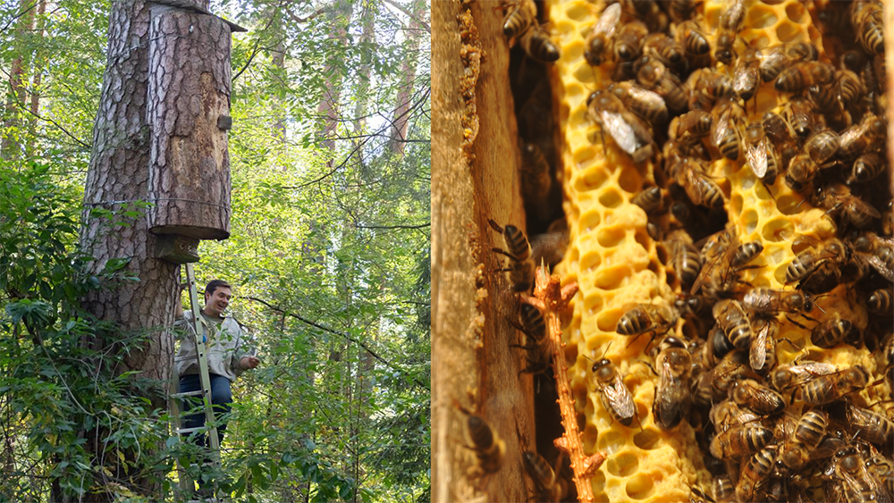 Mesipistiäisten merkitys ekosysteemiselle kestävyydelle on tiedostettu yhä paremmin. Augustowin metsissä Pohjois-Puolassa pidetään yllä alueella pitkään harrastettua mehiläisten tarhaamista puissa. LIVIND-pilottihankkeessa lisätään yhteistyötä Puolan ja Liettuan tarhaajien välillä. Kuva: Bractwo Bartne.