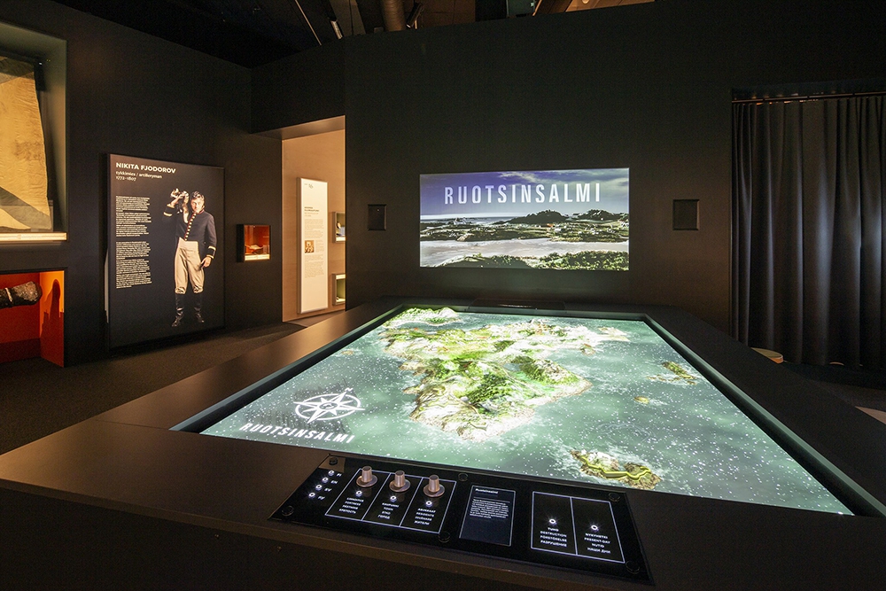 Ruotsinsalmen merilinnoitus sijaitsi nykyisen Kotkan keskustan alueella Kotkansaarella. Vuorovaikutteinen pienoismalli on inspiroinut lähikoulun opettajia teettämään oppilailla omat pienoismallinsa kotisaaresta. Kuva: Soile Tirilä, Museovirasto.