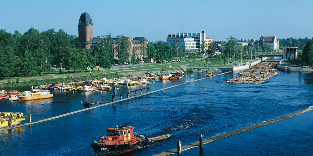 Joensuun kanava ja näkymä kaupunkiin 70-luvulla. Kuva: Teuvo Kanerva, Historian kuvakokoelma, Museovirasto.